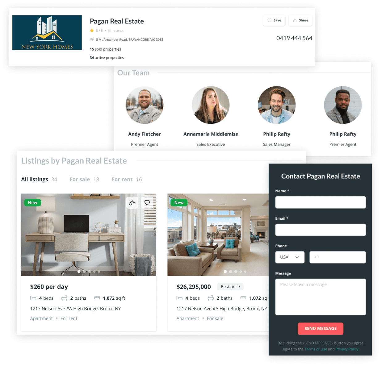 From now you can create a complete Agency profile page with assigned agents and listings, contact form and ratings.