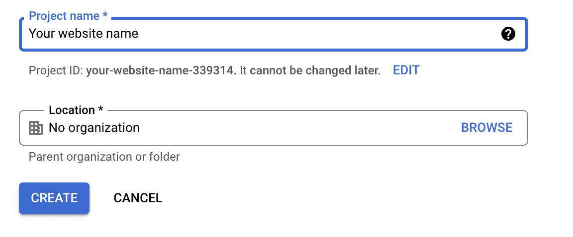 If you don't have any, click on Create project and add its name and other details: