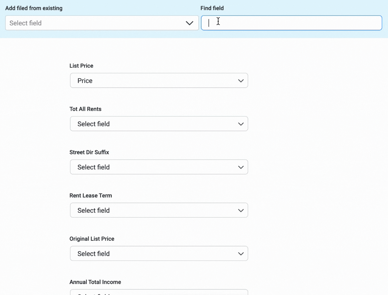 You can scroll down and assign every field one by one or you can type required fields' names in a search bar and quickly find those ones which you need: