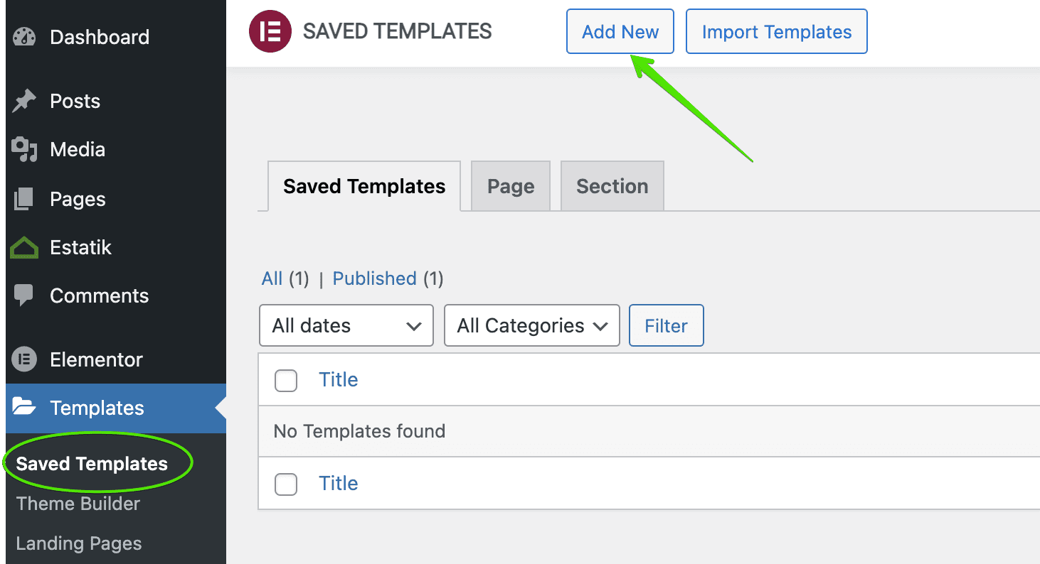 Then go to Saved Templates and create a new template for Estatik Single Property page.