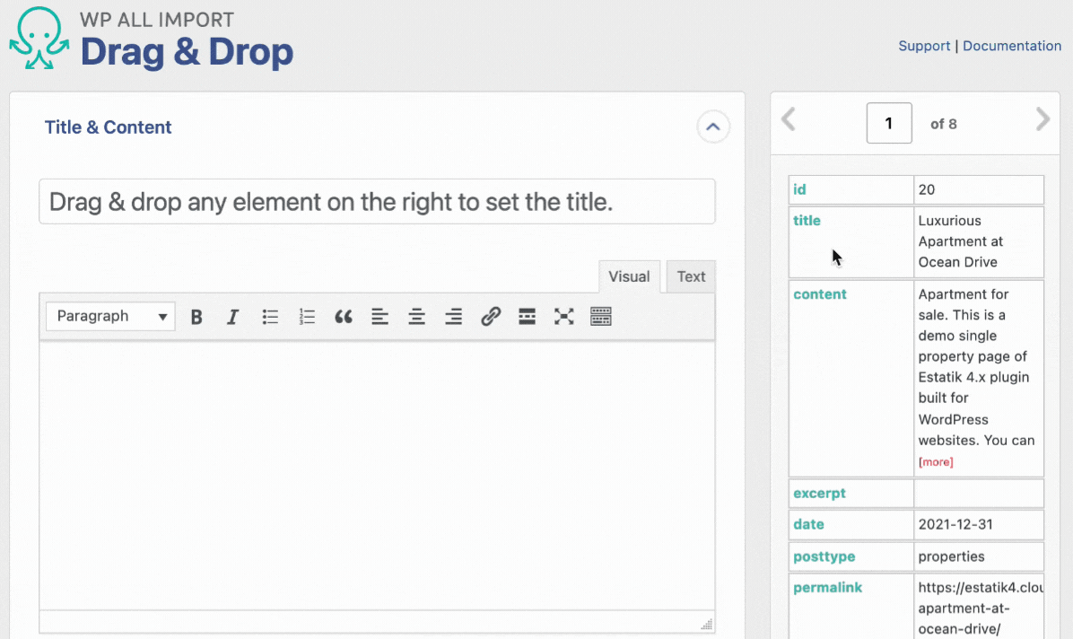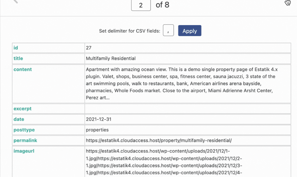 1. Prepare the CSV file with properties data. You can export it first via WP ALL Export plugin to get a sample file that you can edit afterward.