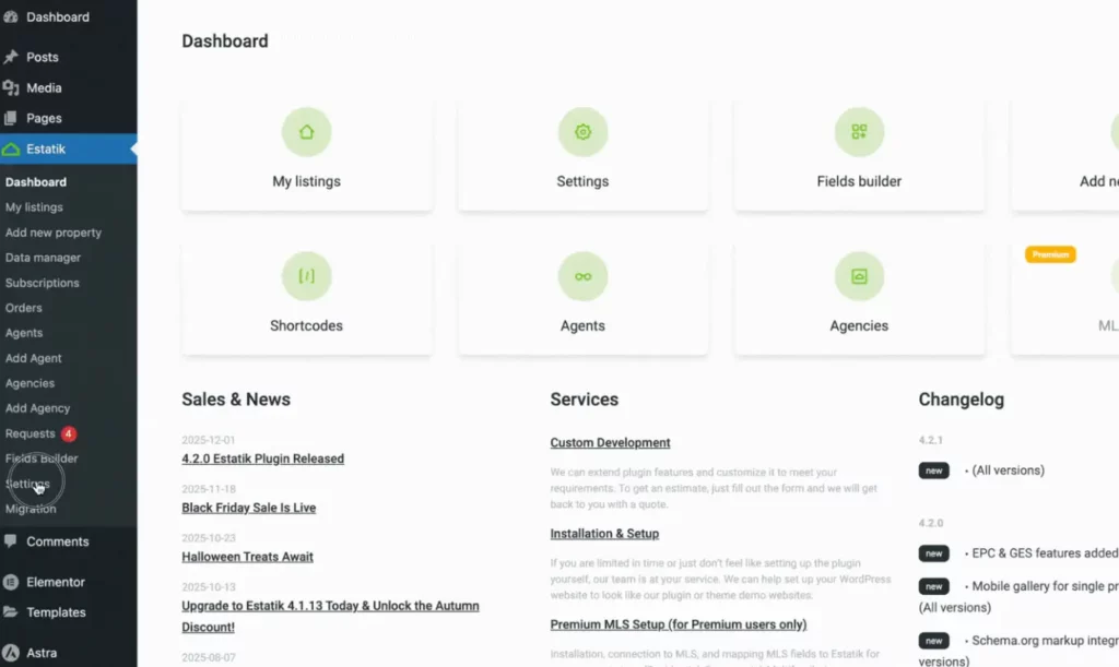 - Go to Estatik > Settings > General